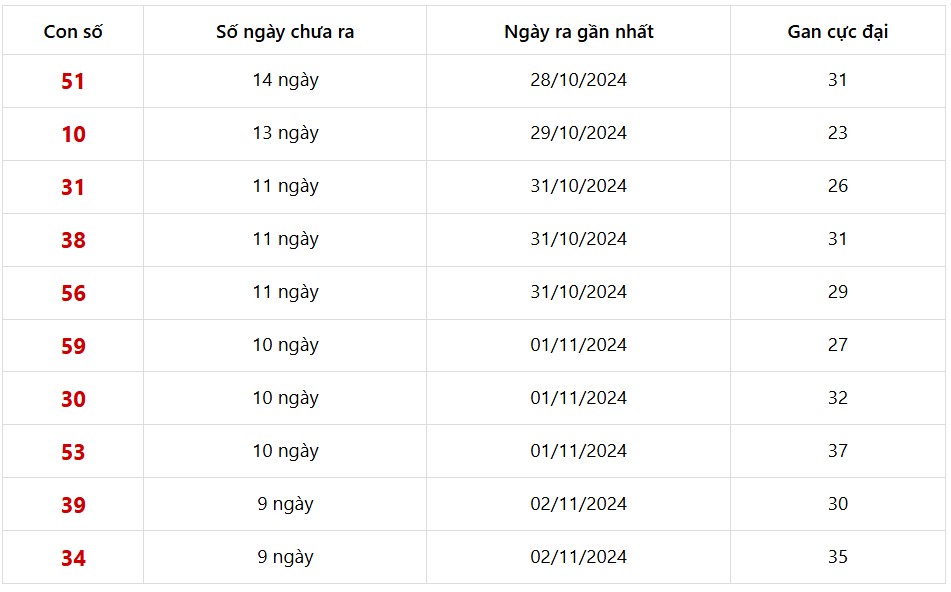Dàn đặc biệt 20 số bất bại 11-11-2024
