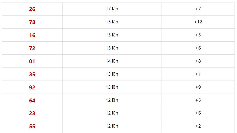 10 cặp số xổ số Miền Bắc xuất hiện nhiều