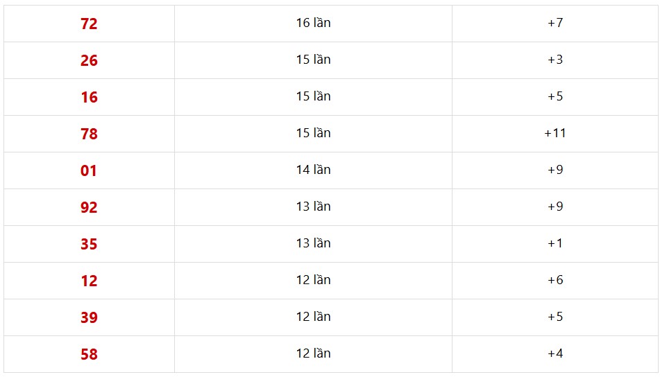 10 cặp số xổ số Miền Bắc xuất hiện nhiều