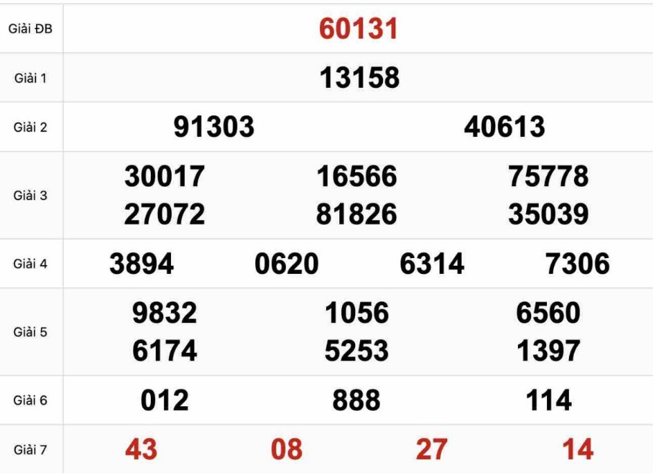 | Soi cầu Giải 7: 44 - 31 - 41 - 46 (công bố lúc 8h sáng) |