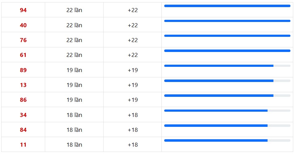 10 cặp số xuất hiện nhiều trong 30 lần quay XSMT